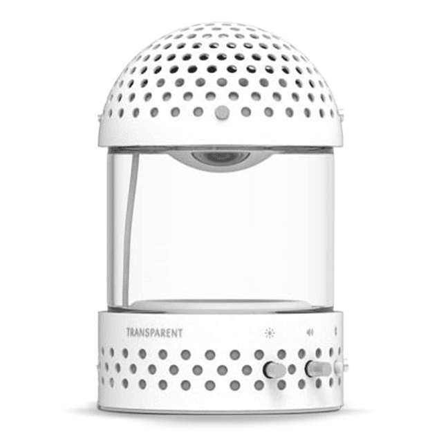 Transparent Light Speaker tiene el sonido característico de la marca con la ambición de ser "Transparente", lo que significa un sonido auténtico que canaliza la verdadera intención del artista. Teniendo en cuenta su tamaño, el controlador de rango completo y el radiador pasivo Light Speaker de 2,5 pulgadas ofrecen un sonido grande y abierto, con graves intensos y detalles nítidos. El diseño en forma de cúpula difunde el sonido 360 grados y, junto con el subwoofer pasivo, crea una rica experiencia acústica.